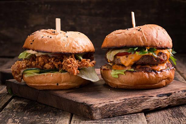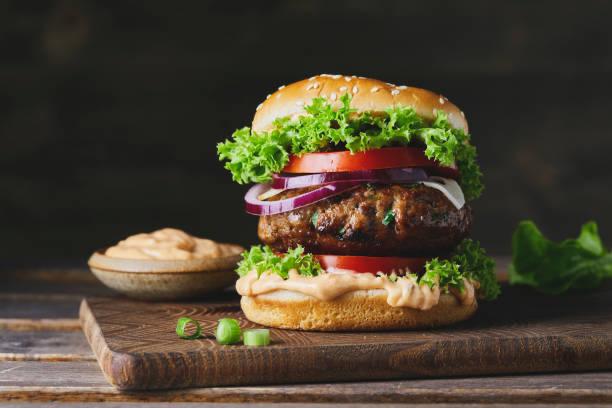 Menu enfant : hamburger à la dinde fumée avec omelette et fromage.